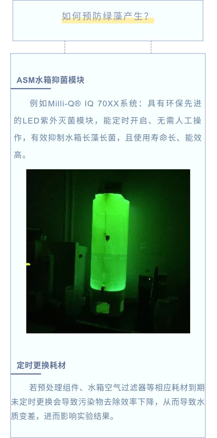 水箱是實(shí)驗(yàn)室純水設(shè)備中的重要組成部分,出現(xiàn)綠藻會(huì)直接導(dǎo)致水質(zhì)變差,進(jìn)而帶來影響實(shí)驗(yàn)結(jié)果的風(fēng)險(xiǎn)。